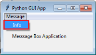 In this blog, I am going to create a message box in a Python GUI application. When a user clicks the info item from the message menu, it will display a message box on the application screen.