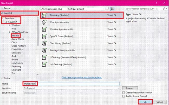 The steps, which are required to be followed in order to create a Analog Clock control in Xamarin Android app, using Visual Studio 2015 are-