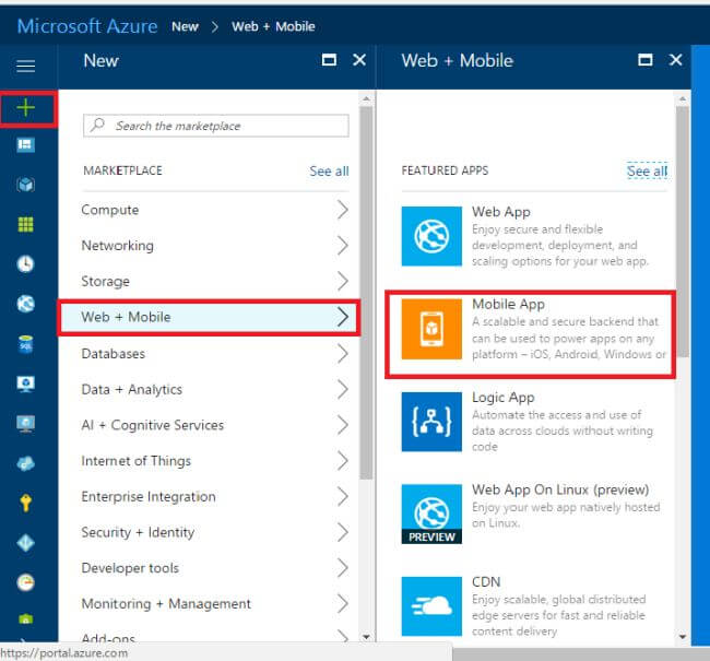 In the Jump bar, click New button. Then, click Web + Mobile >> Mobile App.
