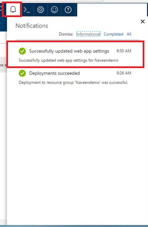 Then, the successful deployment notifications shows up. Now, open the Mobile App and go to Application Settings.
