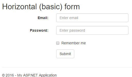 To create a responsive application in ASP.NET Web application, we need to add the bootstrap JS and CSS files manually but in Visual Studio 2015, it is already added with the web application as built-in functionality. In this sample application, we will see how to use bootstrap library for forms and controls.