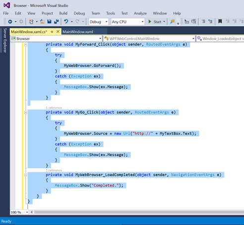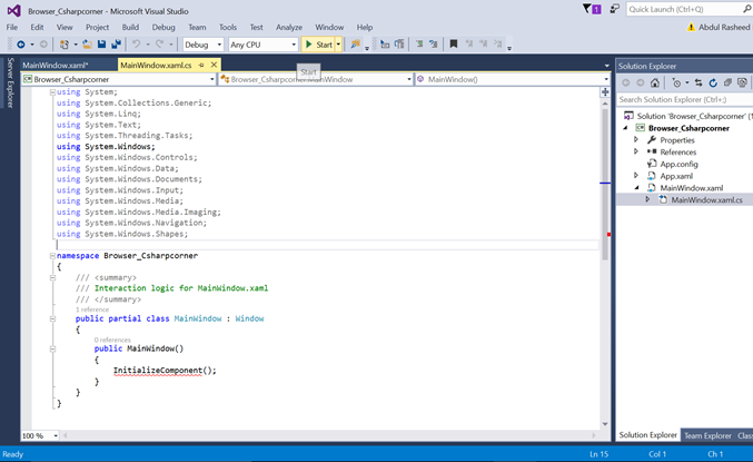 Step 3: Goto MainWindow.xaml and paste the following code for the web browser: