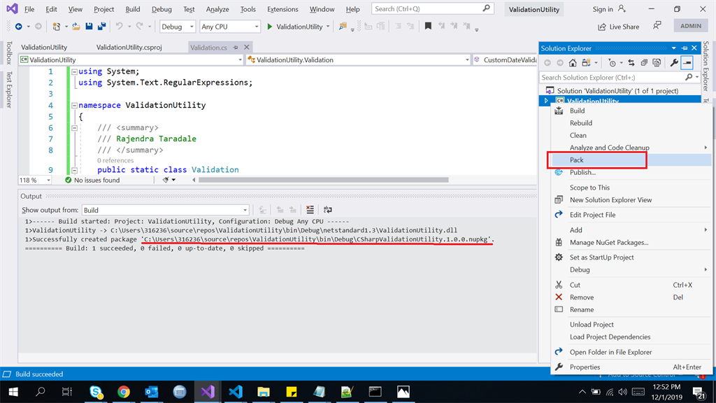 Once the changes are done, right-click on the project and click on the pack to create NuGet packages