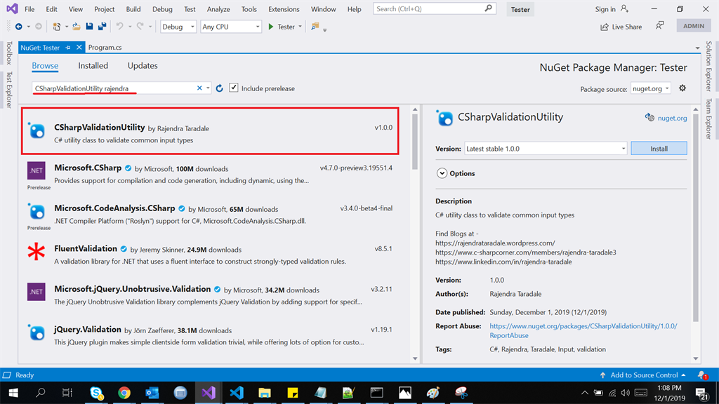 Step 2: Let’s create a small .Net Core class library POC with some common validation functions: