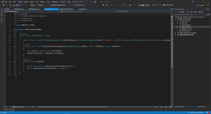 Create a Class ChipsControl.cs in shared project as shown below and inherit from View. For the demo I have not created bindable properties, but viewers are free to create them and expose to XAML.