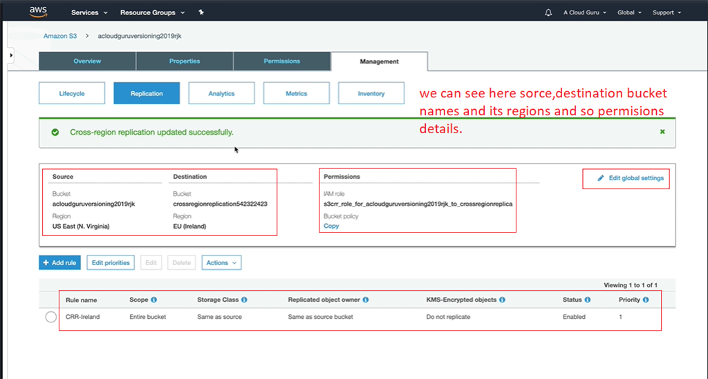 In this blog, we learned about AWS S3 cross-region replication. By achieving cross-region replication, objects are asynchronous while copying to the destination bucket.