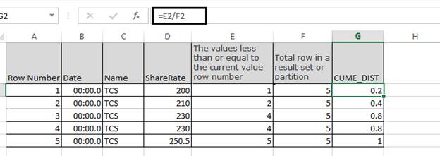 The CUME_DIST () are analytic functions in SQL Server 2012