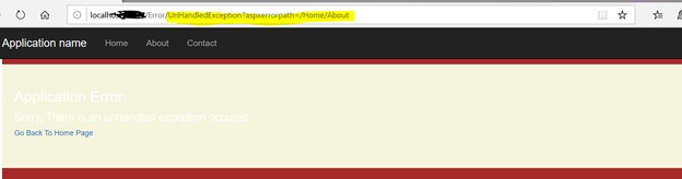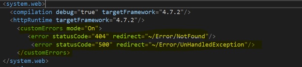 Go to Web.config and. Add some code for “File Not Found” and “UnhandledException”