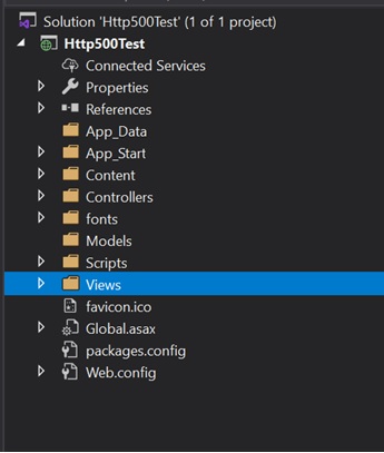 Create a MVC application named “Http500Test”. For this demo, I have used VS 2019 and .NET version 4.7.2