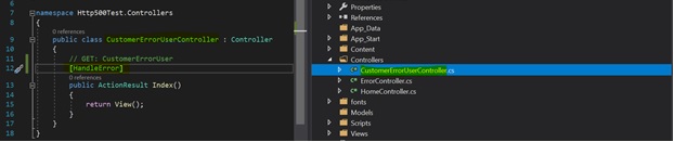 Create a Controller class file named “CustomerErrorUserController.cs”