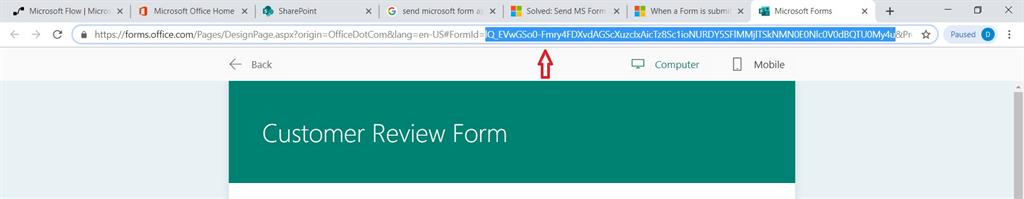 6. Enter the form ID here which we copied from the address bar of the browser previously while creating the Form.