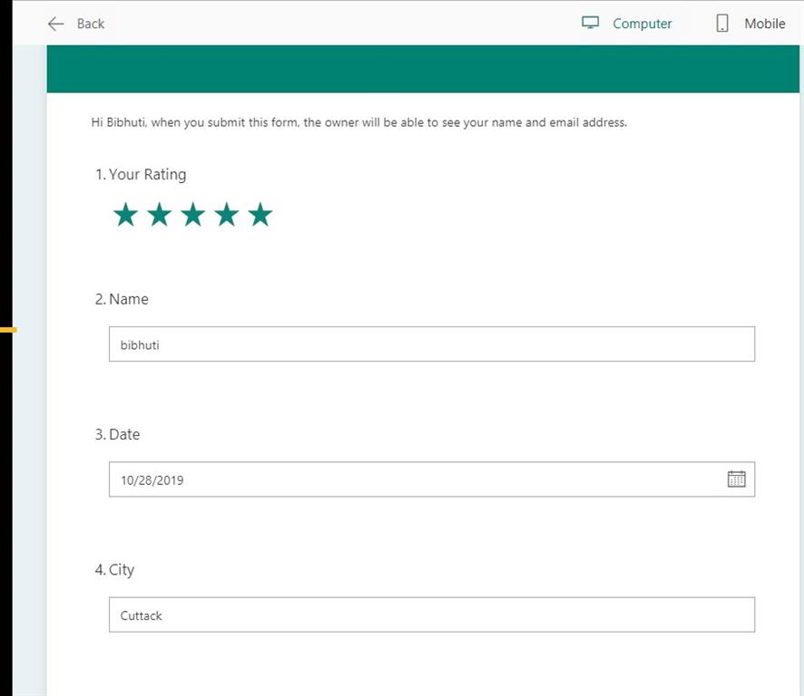 6. Click on the Untitled form and rename it as “Customer Review Form”.