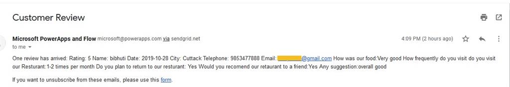 3. Now open and check the email ID mentioned in the flow. There will be an email with all the review details as shown in the following.
