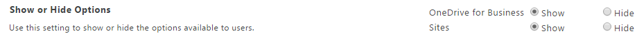 You can select as Show or Hide if you want One Drive to be visible and to be used by the users of your organization.