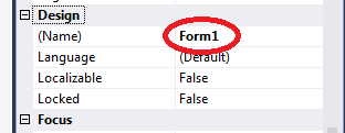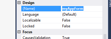Now rename the form in “design”. This name is used to call this form i.e. this is the actual name which we are going to use during programing.