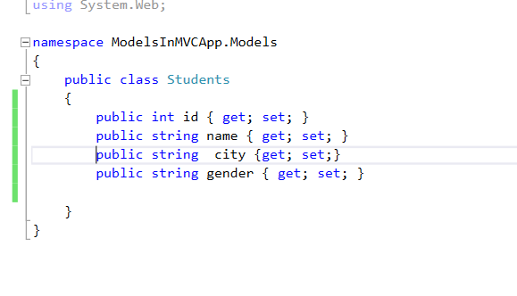 This entity is actually residing in the Models folder of our MVC Application. We have Students class with the auto increment properties. Within our Controller StudentsController, we have created an instance of student object and we actually hard coded our values within our controller action method and passed the student object for rendering as-