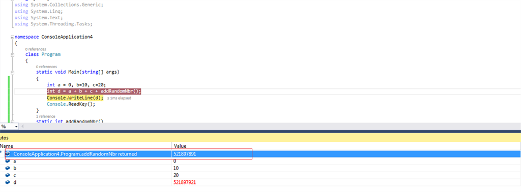 By using Autos window, we can easily debug and inspect multi-line statements.