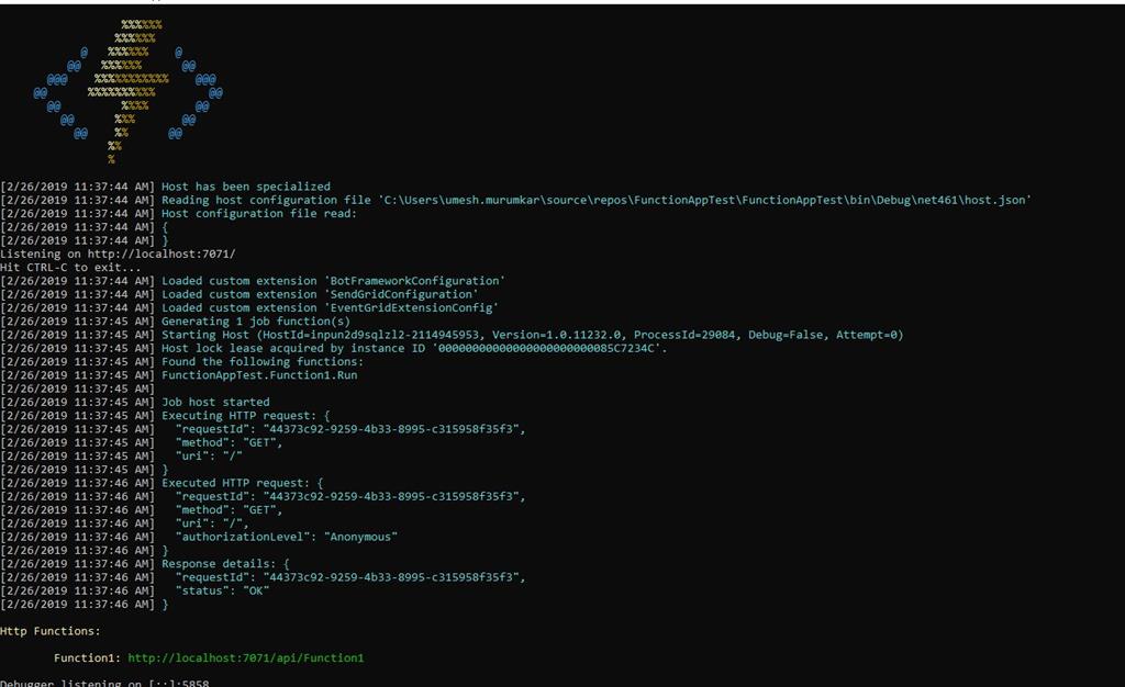 http://localhost:7071/api/Function1?name=UmeshMurumkar,