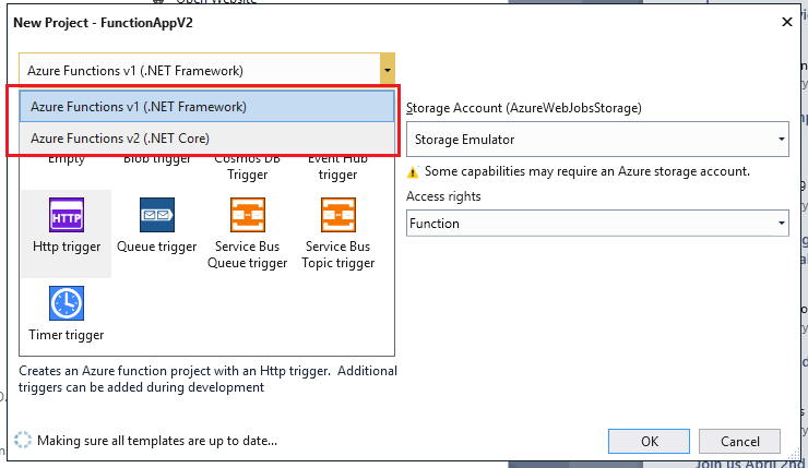If you want to create Azure Function with .net Framework i.e. Azure Function v1, Visual studio lets you create the function.