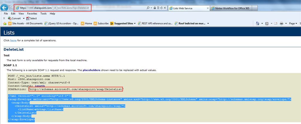 We will be deleting a list from SharePoint site by calling the web service _vti_bin/lists.asmx. I have created a list which has Name – Single line of text (used to specify the list name that has to be deleted).
