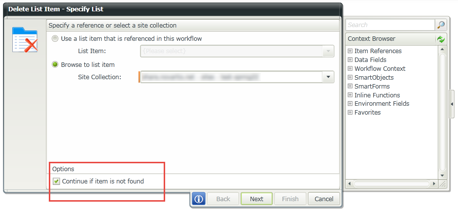 Specify a site collection and select “Continue if item is not found”. Click on Next button.