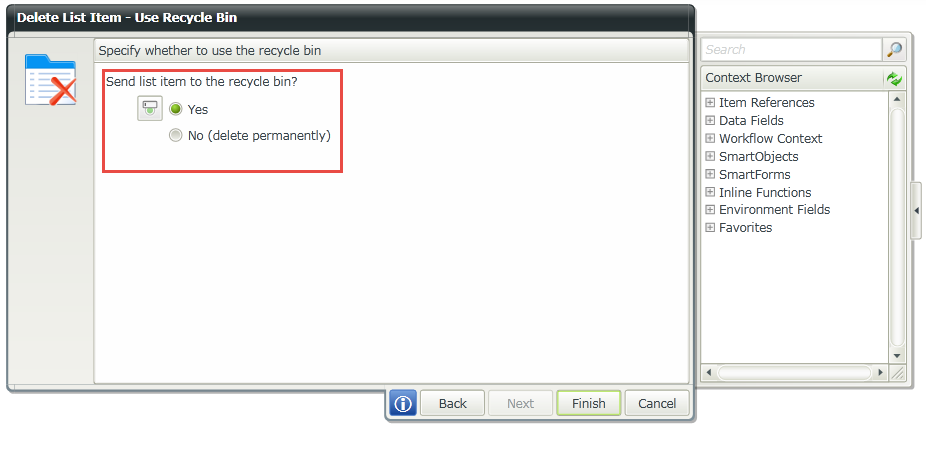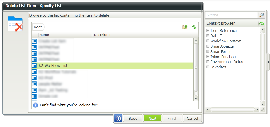 Specify filter for the list items to delete (Delete the list items from “K2 Workflow List” which is having the “Title” field value). Click on Next button.