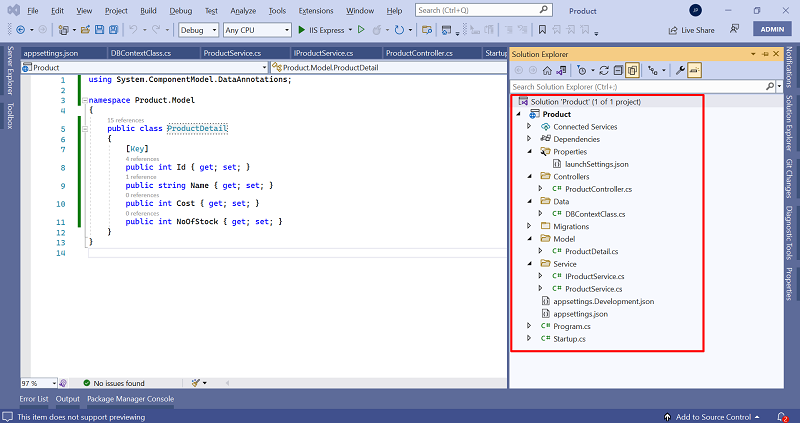 Create the ProductService and IProductService Classes inside Service Folder for data manipulation using Dependency Injection