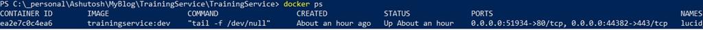 Once the image is created, (i.e. trainingservice:dev where dev is the tag name of image), check all images present in your local machine by executing the docker images.