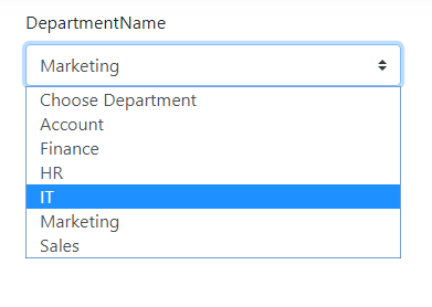 - ViewData["Departments"] = new SelectList(dbContext.Departments, "Id", "DepartmentName");