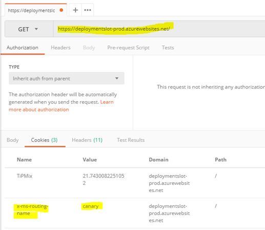 One caveat with this is that this uses a cookie-based approach for redirection. A cookie is stored on your browser which determines that which Slot will serve traffic to you. This can be seen in the following snippet --