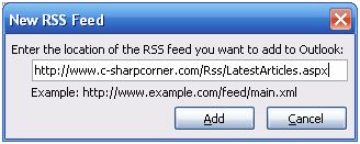 Now type http://www.c-sharpcorner.com/Rss/LatestArticles.aspx in New RSS Feed dialog.
