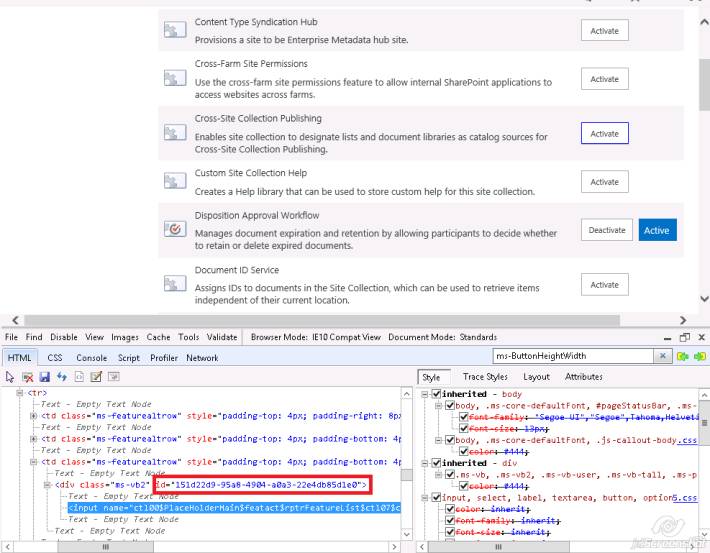 We can use the same ManageFeatures.aspx page using which we can activate or de-activate the feature ID and developer tool of browser.