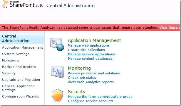 Go to SharePoint central administration