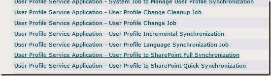 Scroll down and select User Profile Service Application – User Profile to SharePoint Full Synchronization