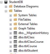 PM> Update-Database. Check the following changes in DB for tblStudent.