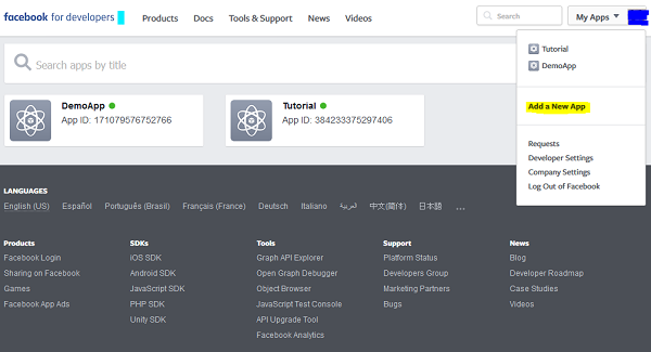 Before creating a .NET MVC application, we have to register the domain name that will be used for the web site at the Facebook development site: