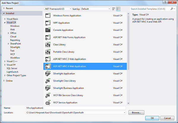 Firstly, create a New ASp.Net MVC 4 Web Application project in Visual Studio 2012 and select "Internet Application".