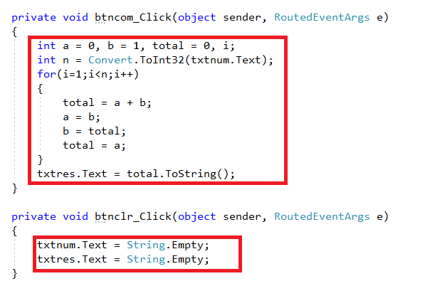 For example, 0 and 1 are the two starting numbers of Fibonacci Series, then the next numbers in the Fibonacci sequence are 1,2,3,5,8,13,21,34,...... Now, we will create a WPF application for calculating the nth term of Fibonacci series.
