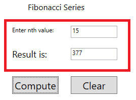 Now, we have created a WPF Application for calculating the nth term of Fibonacci Series.