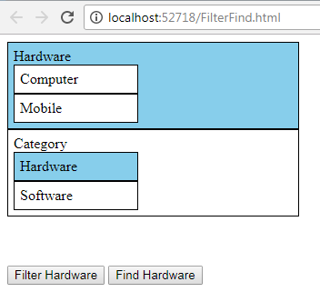 Both filter() and find() methods are very similar, except the filter is applied to all the elements while finding searches child elements only.