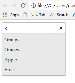 From the above figure you can notice based on input “e” it will check for the item which starts with e in the list of item, if there is no item then the operator changes to contain and return a list which contains a letter e.
