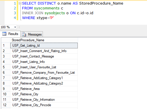 - SELECT DISTINCT o.name AS StoredProcedure_Name
