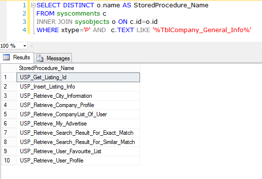 - WHERE xtype='P' AND c.TEXT LIKE '%TblCompany_General_Info%'