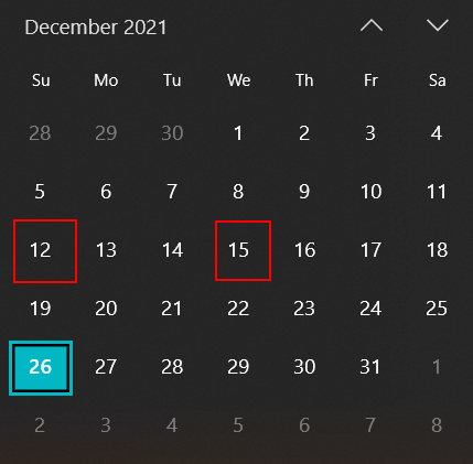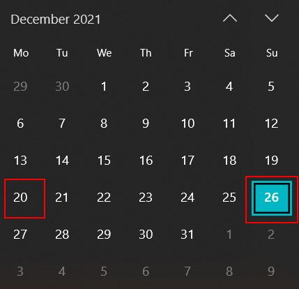 In the above image you can see that I entered 15 Dec 2021, and it returns 12 Dec 2021 which is first date of week as you can check in given calendar image.