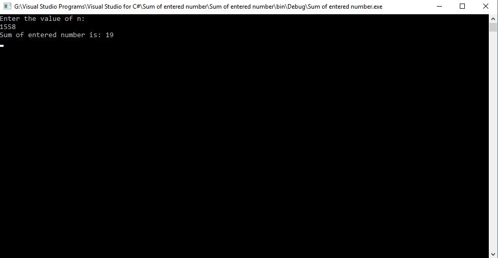 - Console.WriteLine("Sum of entered number is: " + sum);