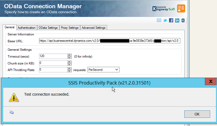 Where environment represent dev, test or production environment so using this API I setup connection to our environment using OAuth 2.0. You refer KingswaySoft documentation for setting up connection using OAuth 2.0