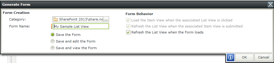 Enter the Form Name and then click on Ok button. Form will be successfully generated.