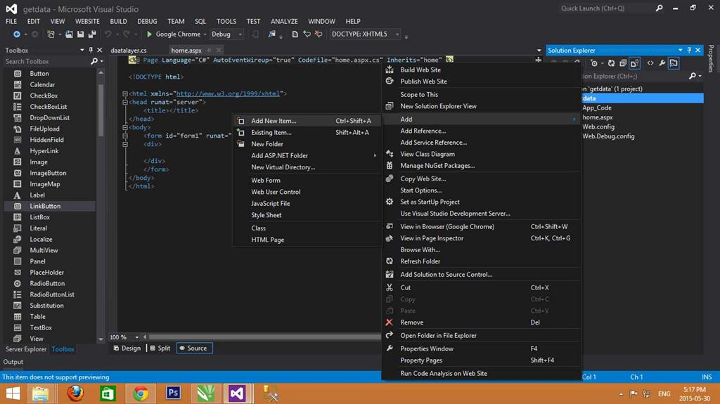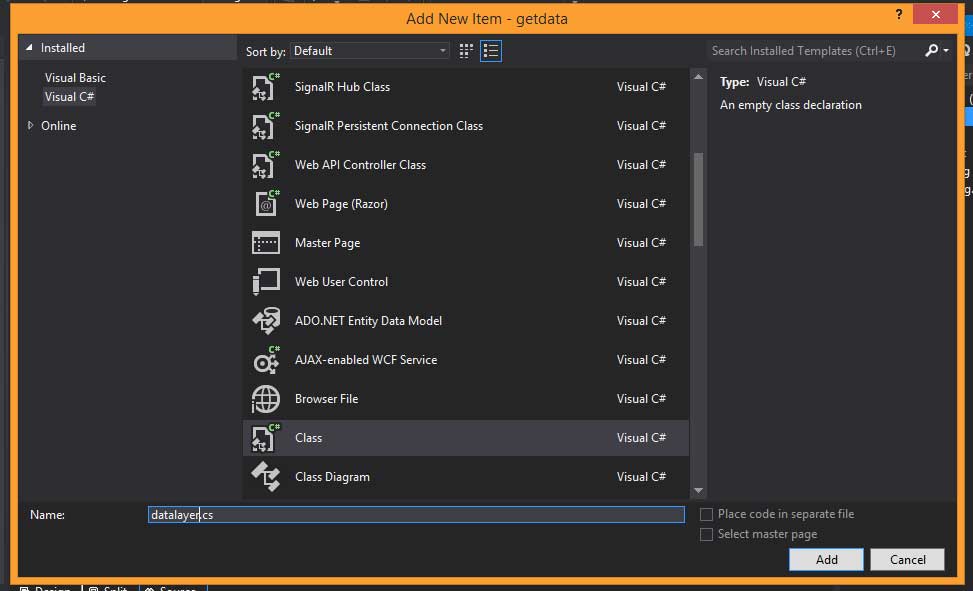 Step 5: Add a class library file to create a method name it datalayer.