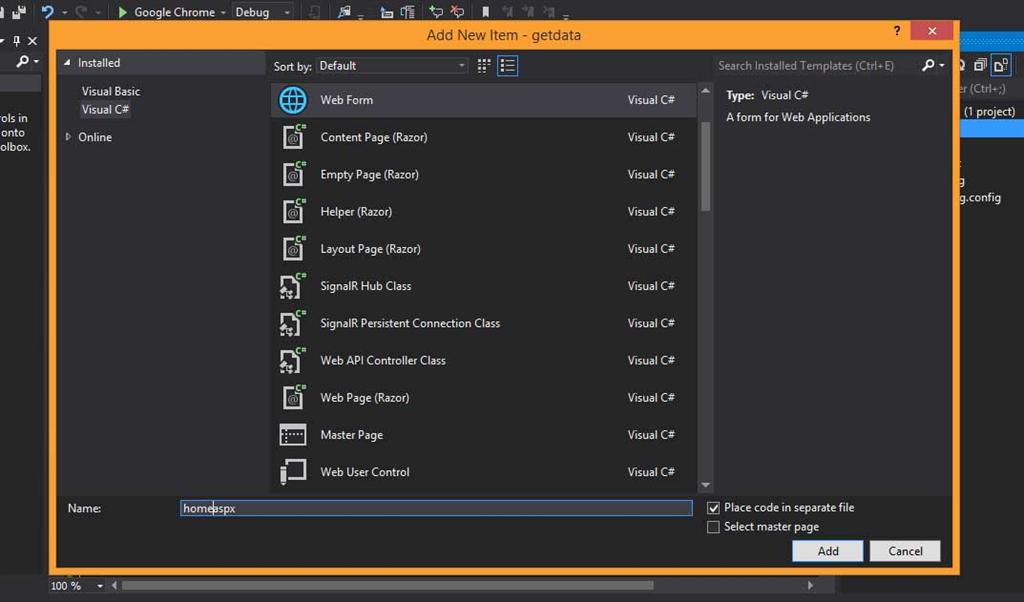 Step 1: Create a empty website using Visual Studio 2012.