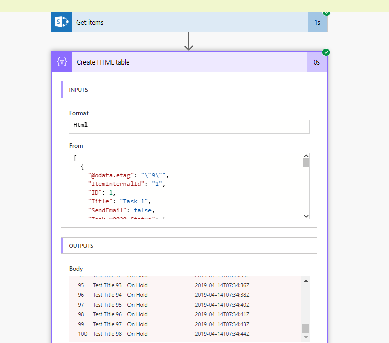 That’s it, click on Done. Run the FLOW again and see the result below now >> It fetched the top 500 items from my SharePoint list.
